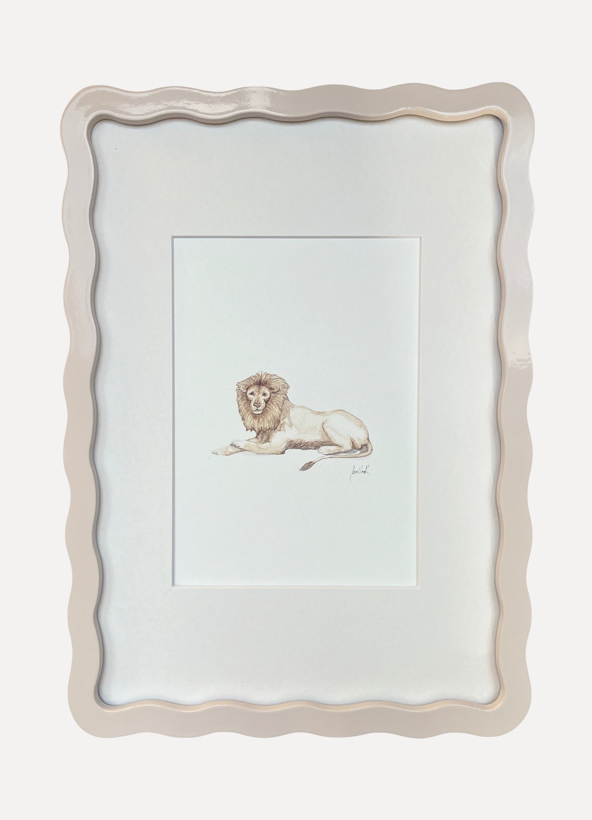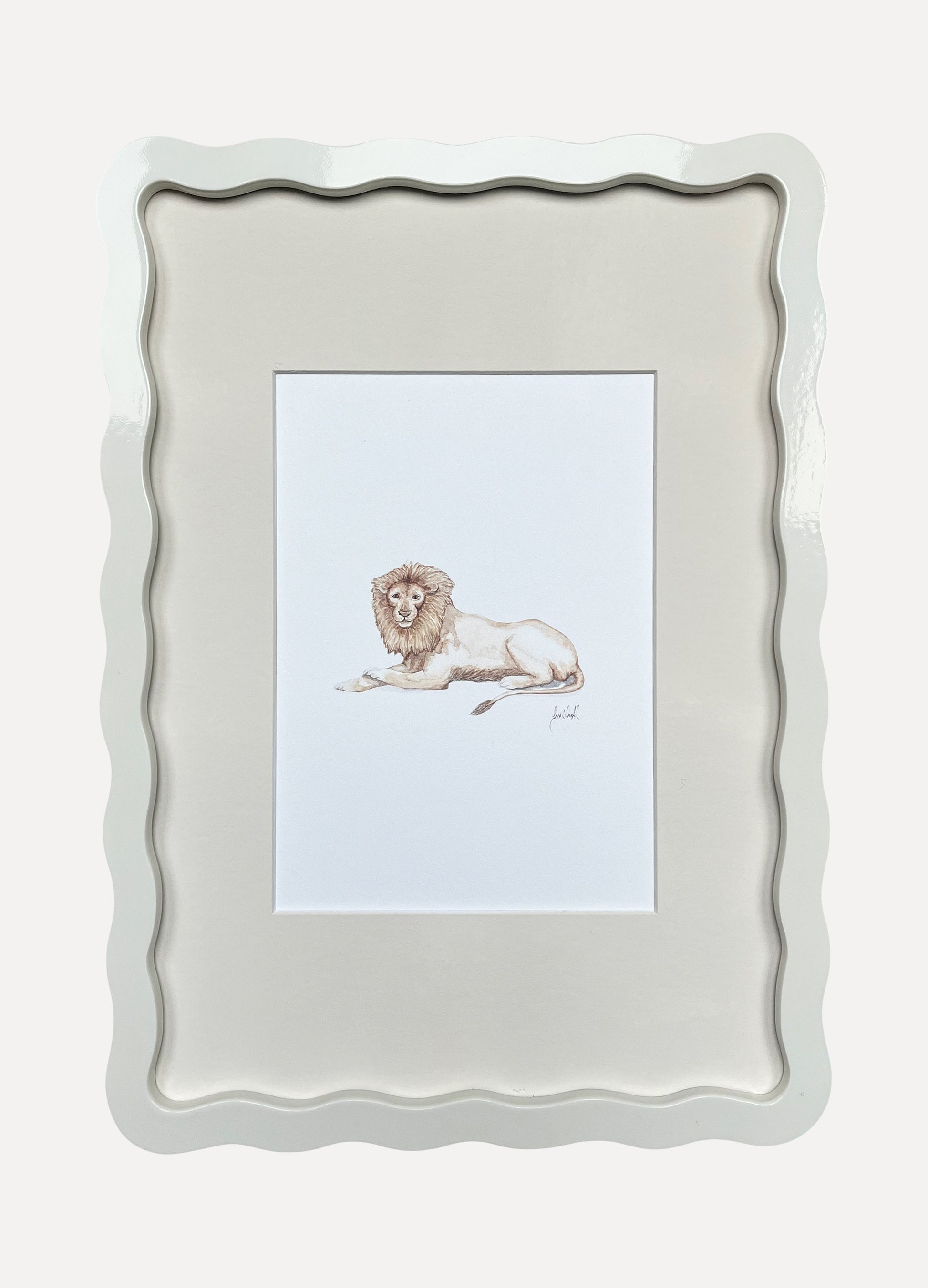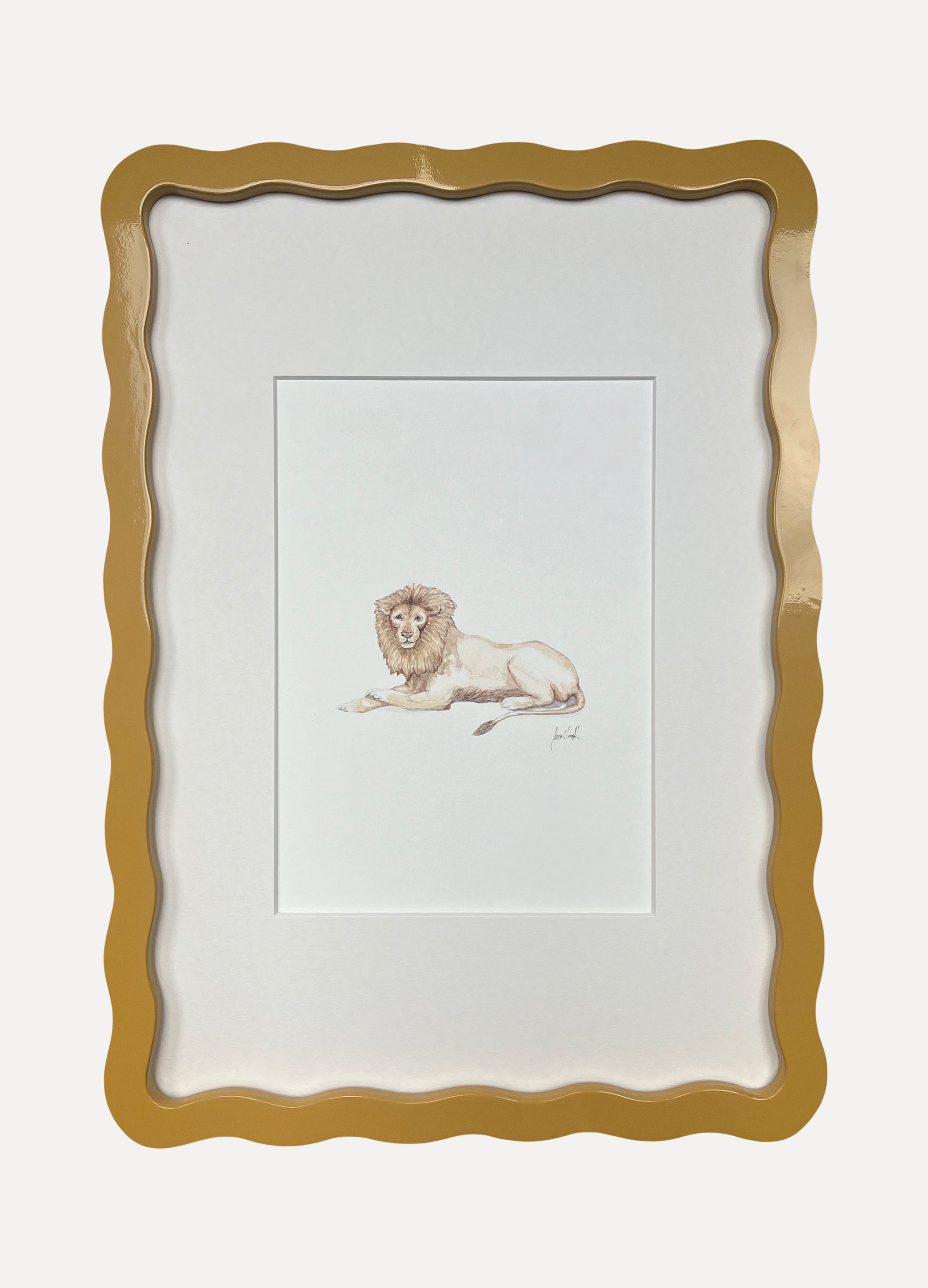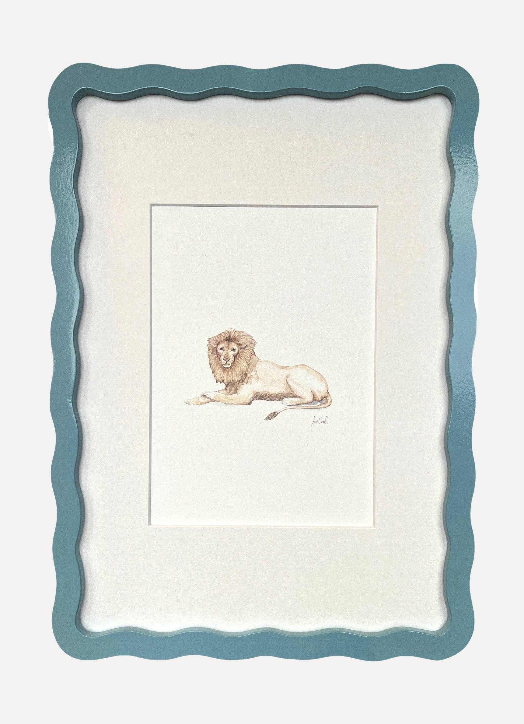 Sarah Smith ‘Lion’ watercolour print, framed in A4 Alma Frames Wiggles. Available in all six Alma colours, with snow white mount or upgrade to a matching mount. Glazed with real glass with brass fixings for hanging.